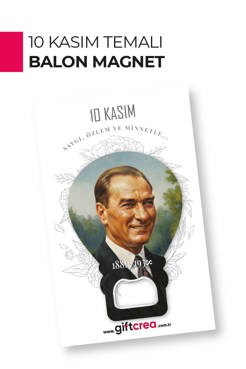 Ulu Önder Mustafa Kemal Atatürk’ü anmak ve 10 Kasım’ın anlamını yaşatmak için tasarlanan Atatürk temalı balon magnet, duygusal değeri yüksek, şık bir anma ve hediye ürünüdür.