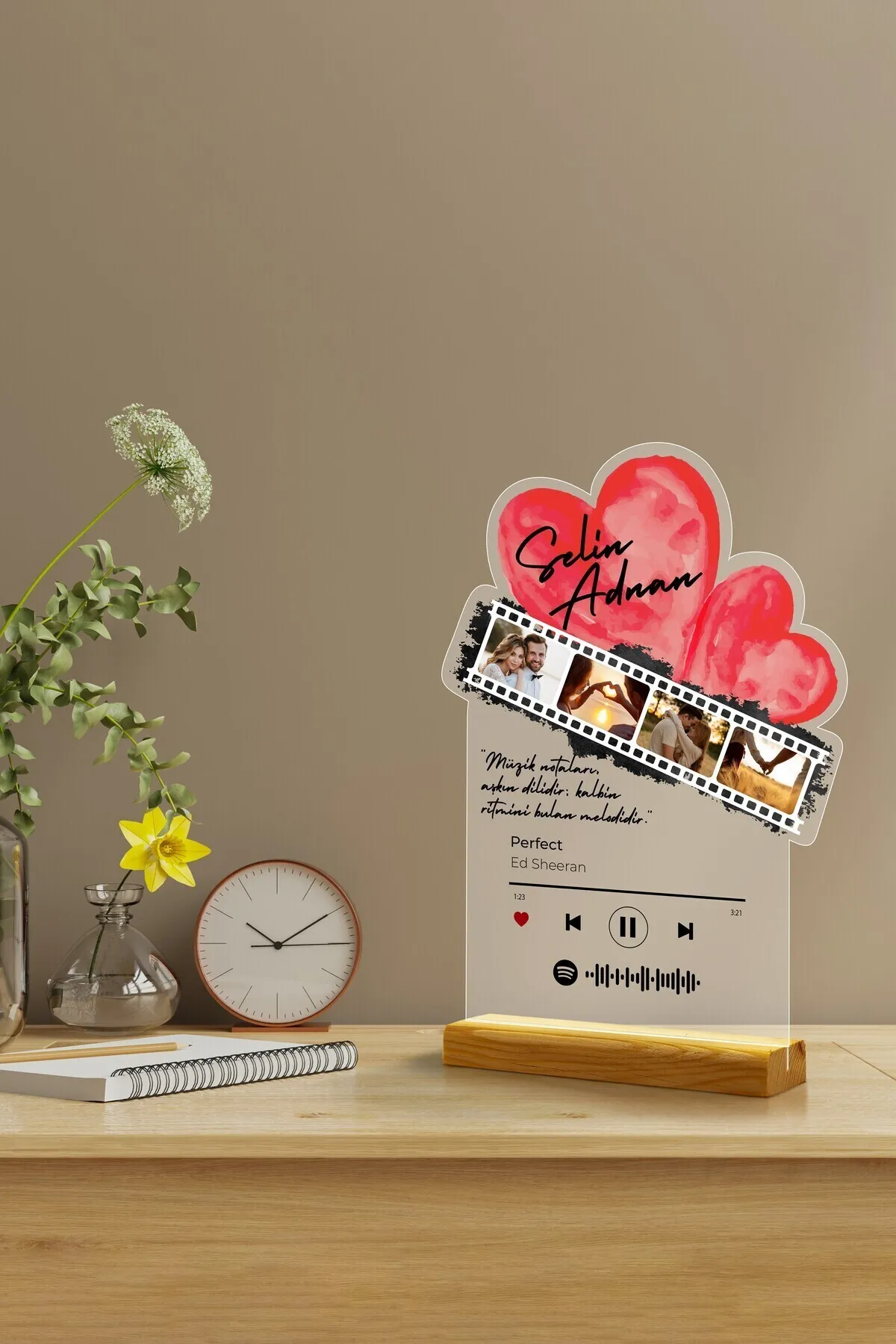 Kişiye Özel Fotoğraf Albümlü Pleksi Seti Müzikli Baskılı Spotify , Sevgililer Gününe Özel Set