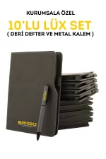 Bu özel deri defter ve metal kalem seti, işletmenizin imzasını taşıyan unutulmaz bir hediye olarak öne çıkacaktır. Kurumsal prestijinizi her zaman en üst seviyede tutun!