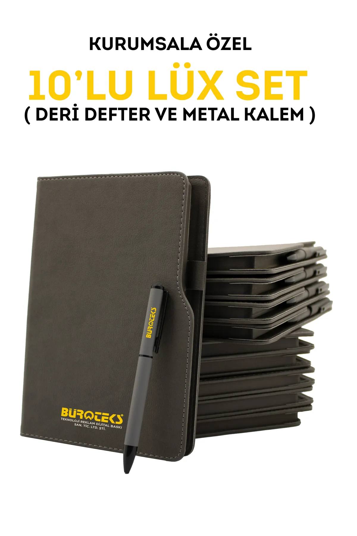 İşletmenizin prestijini ve profesyonelliğini yansıtan özel bir hediye arayışındaysanız, aradığınız çözüm burada! Özel olarak tasarlanmış bu 10’li deri defter ve metal kalem seti, kaliteli malzemelerle üretilmiş olup işletmenizin logosu veya sloganıyla özelleştirilebilir. Hem zarif hem de işlevsel olan bu set, çalışanlarınıza, müşterilerinize veya iş ortaklarınıza sunabileceğiniz unutulmaz bir hediye seçeneğidir.