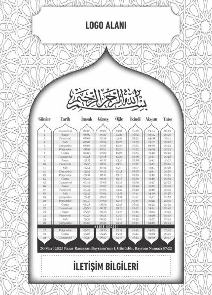 Kurumsal Firmalara Özel Ramazan İmsakiyesi 2026 ,Özelleştirilebilir Dijital Baskılı İmsakiye