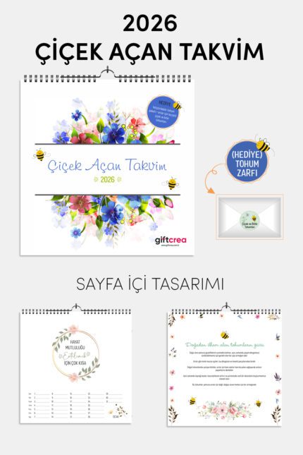 2026 Yeni Yıl Takvimi Çiçek Açan Takvim – Masa ve Duvar Tipi, Tohum Zarfı Hediyeli