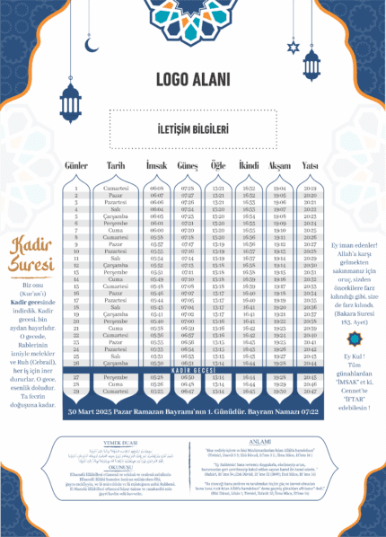 Özelleştirilebilir Ramazan İmsakiyesi 2026 ,Kurumsala Özel Dijital Baskılı Ramazan İmsakiyesi
