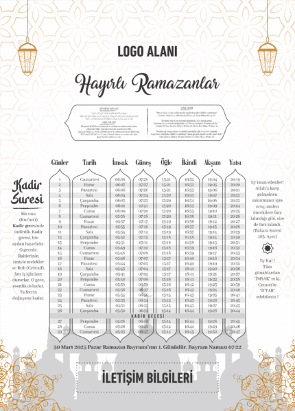 Kurumsal Firmalara Özel Ramazan İmsakiyesi 2026 ,Özelleştirilebilir Dijital Baskılı İmsakiye