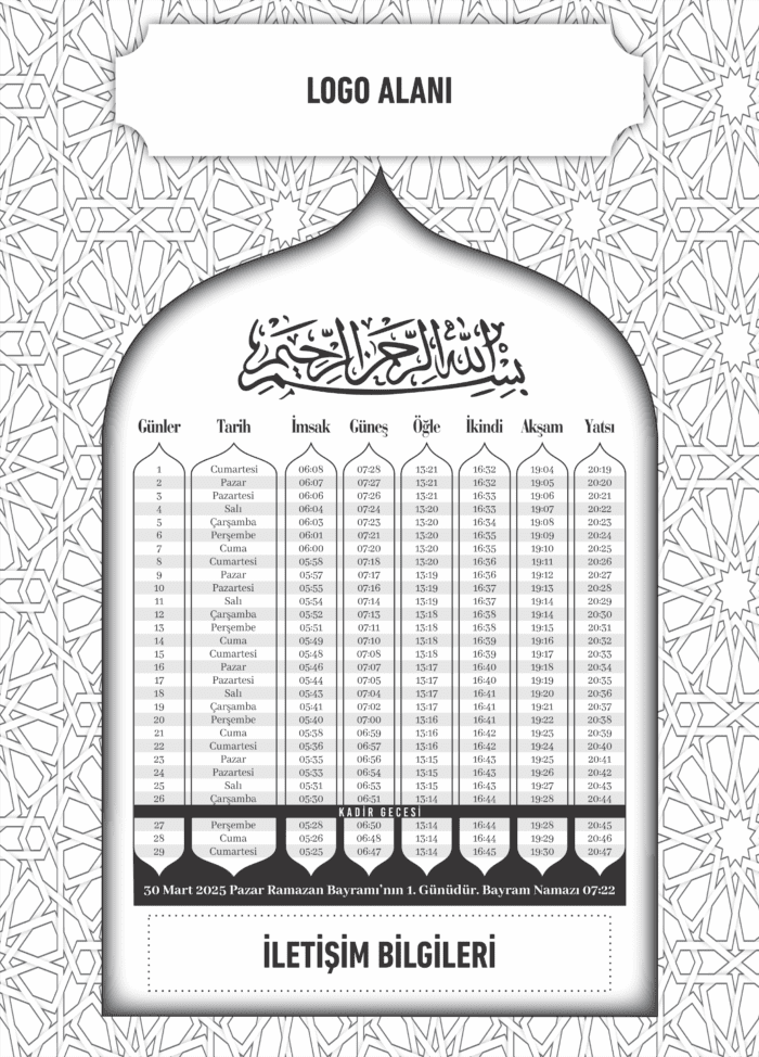 Ramazan İmsakiyesi 2026, Özelleştirilebilir Kurumsal Firmalara Dijital Baskılı İmsakiye