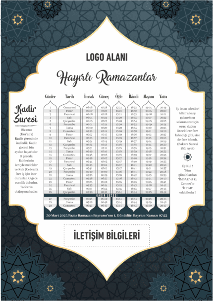 Kişiselleştirilebilir Ramazan İmsakiyesi 2026 ,Firmalara Özel Dijital Baskılı Ramazan İmsakiyesi
